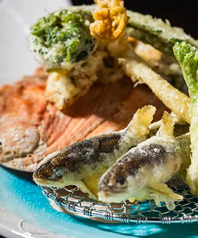 新鮮な山海の幸を素材に、器や盛りつけにも細やかな気をくばっております。おしゃれな個室のダイニングで、心ゆくまでご堪能ください。