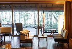 嵯峨沢館の姉妹館。この地は世古峡と呼ばれ、四季折々の景観もこの地を訪れる楽しみのひとつです。自然郷にある清楚で気品あふれる宿に心豊かなひとときをお求めいただけます。