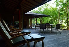 テラスから木々のマイナスイオンもたっぷりと入り込む癒しのつくりになっております。